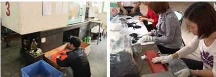 ②過(guò)程檢驗(yàn):產(chǎn)前開(kāi)啤產(chǎn)品確認(rèn),產(chǎn)中每2小時(shí)/次檢查產(chǎn)品的外觀(guān)(檢查產(chǎn)品是否有皮峰,黑點(diǎn),缺膠,料花,氣紋,縮水,偏色等現(xiàn)象),每天最小兩次功能測(cè)試(檢查產(chǎn)品的按裝合適度,拉力,疲勞度,冷凍等測(cè)試)。保證缺陷產(chǎn)品出現(xiàn)控制在2小時(shí)以?xún)?nèi)。